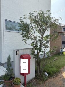 碧南市のお客様から、「ポストの横にある木が伸びて、インターホンが押しづらい」とご相談がありました。