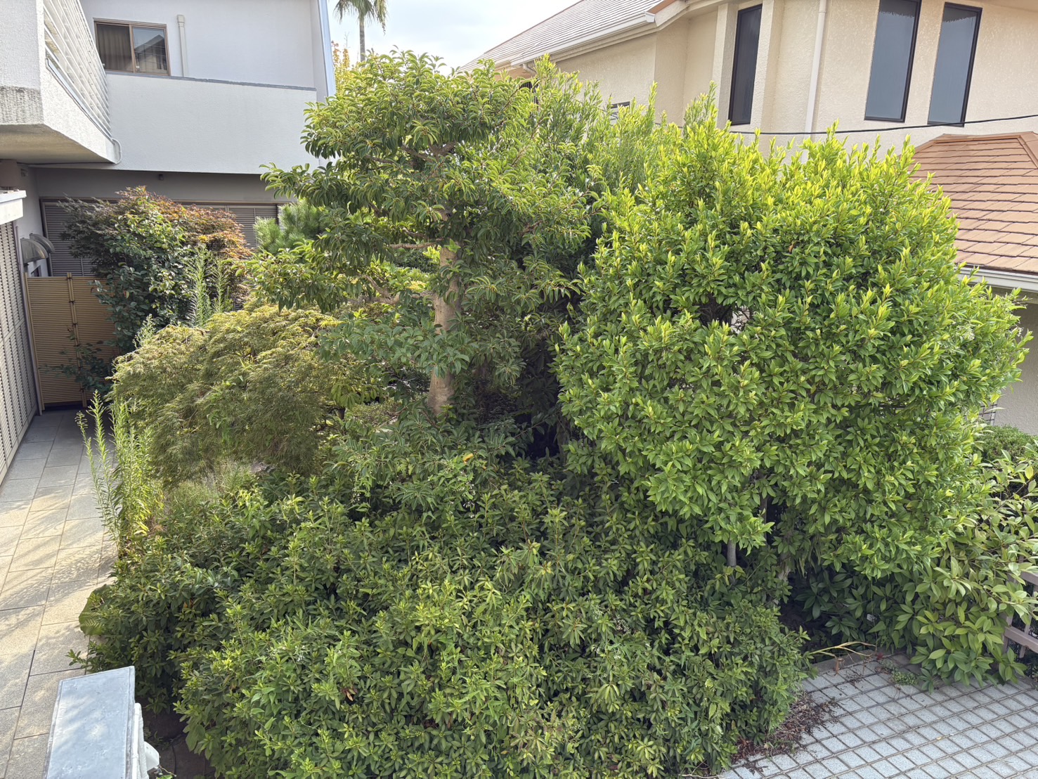 碧南市のお客様から「玄関前の木が伸びすぎて通路を塞いでる」とご相談をいただきました。