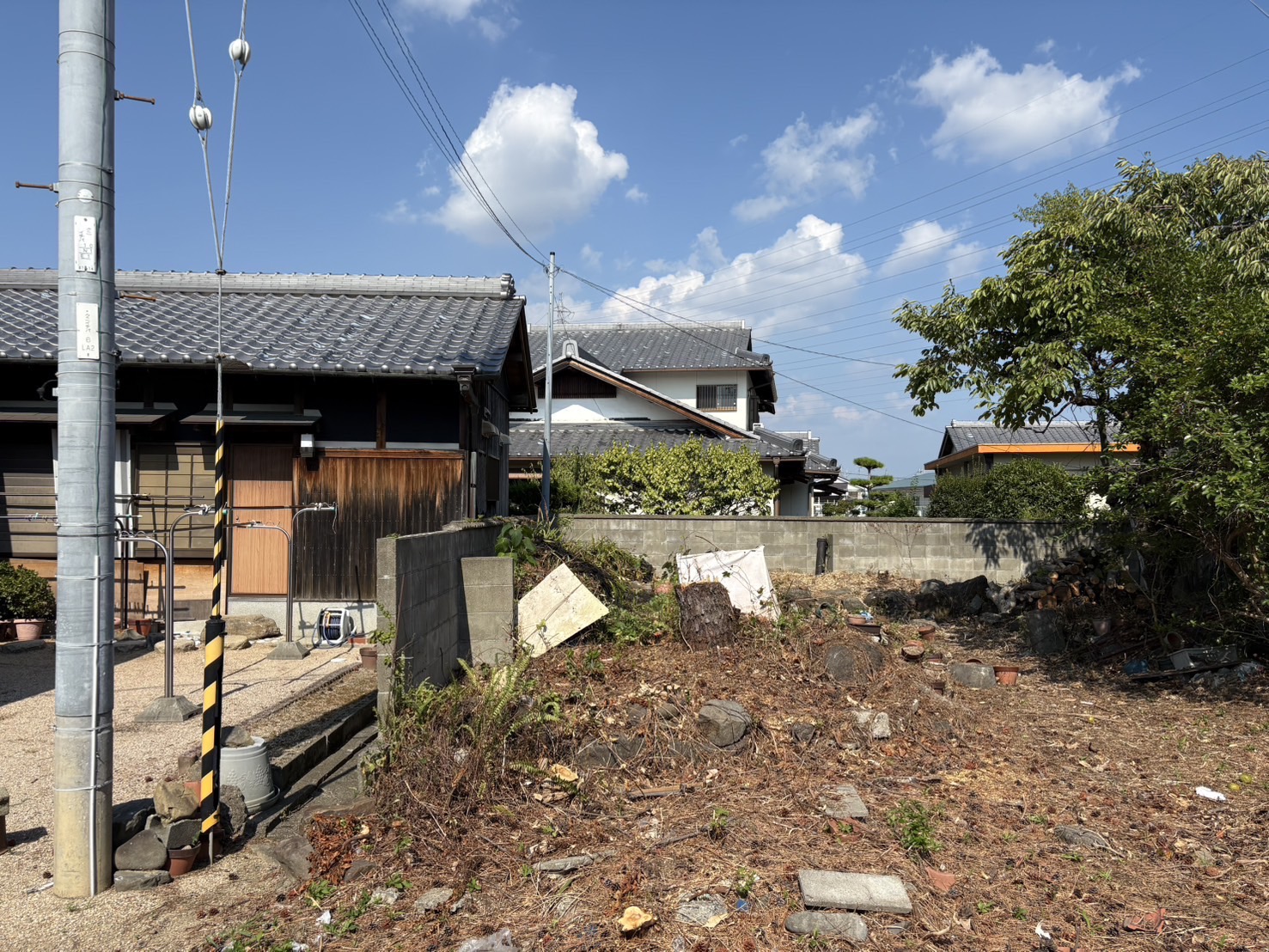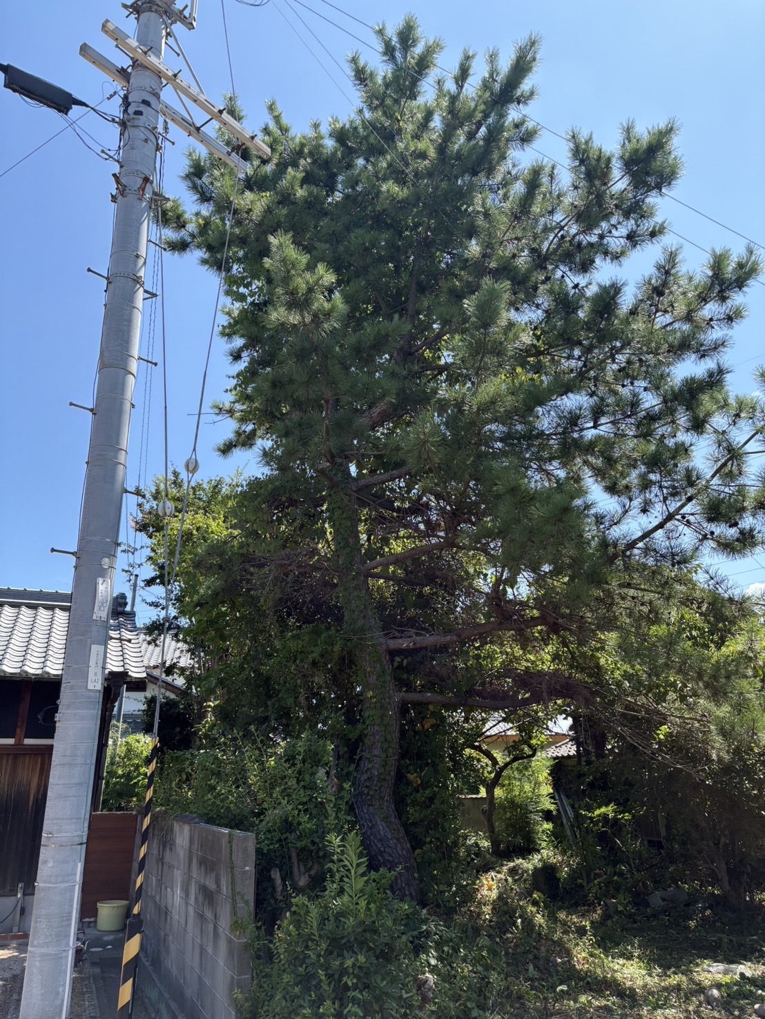 碧南市にお住まいの高齢のお客様から、「庭の木が電信柱にかかりそうで心配。雑草も増えて困っているので片づけてほしい」とご連絡がありました。
