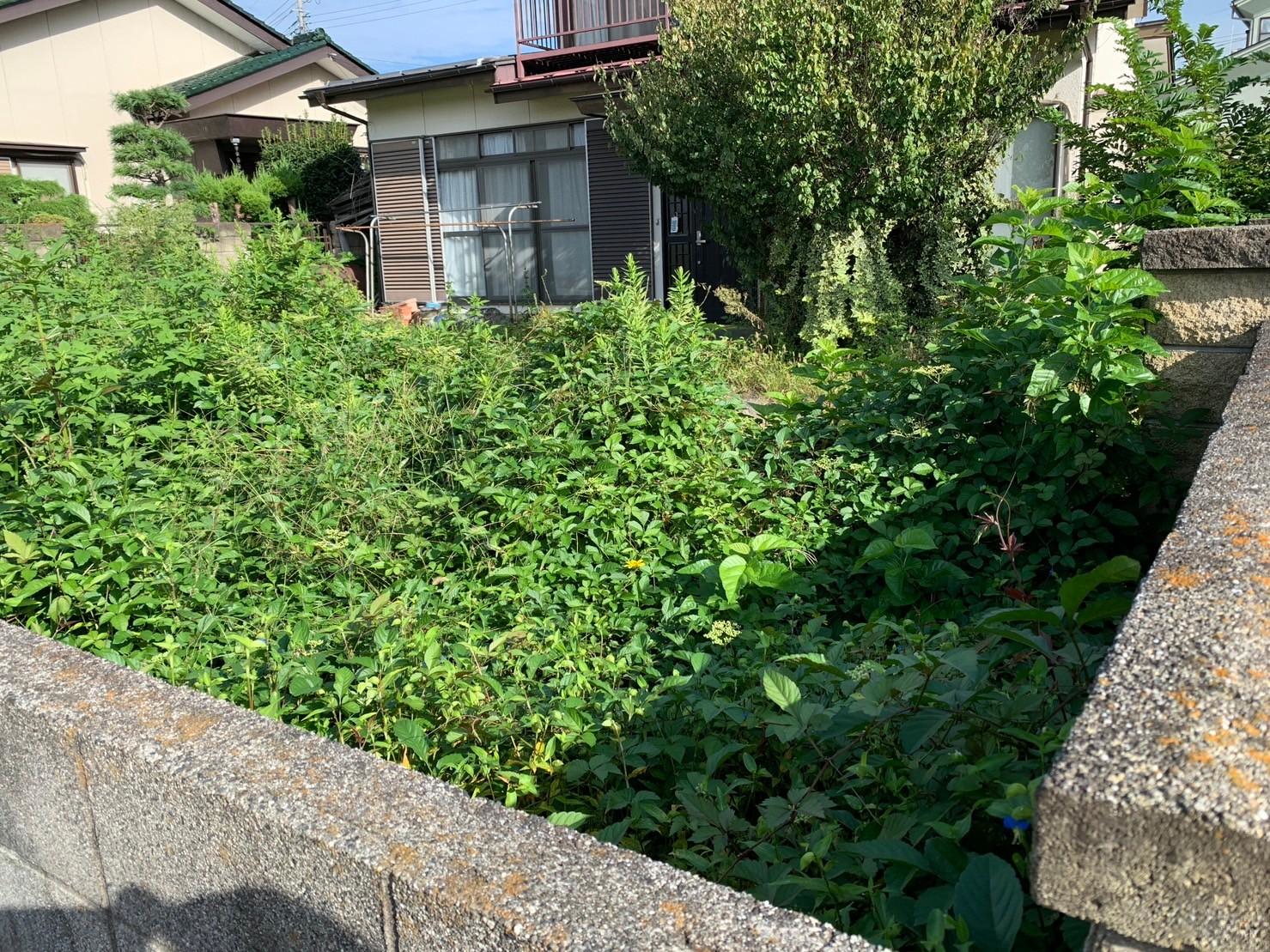 碧南市のお客様から「庭木が大きくなりすぎて手入れが追いつかない。草も敷地いっぱいに生えて困っている」とご相談をいただきました。